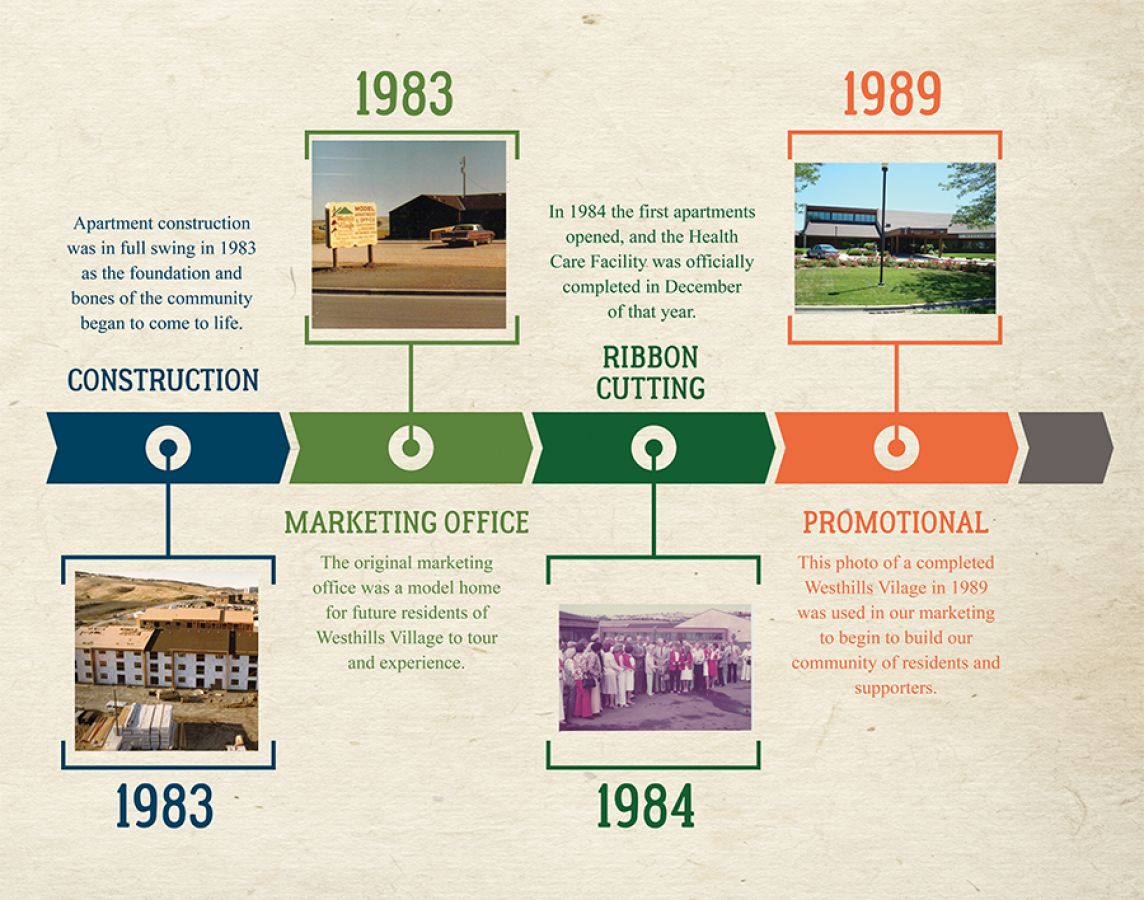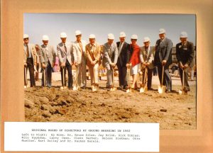 In 1983 ground was broken for the main building at Westhills Village. Present were the original Board of Directors: Ep Howe, Dr. Bruce Allen, Jay Brink, Dick Tobias, Milo Rypkema, Larry Owen, Glenn Barber, Helene Siekman, Otto Mueller, Earl Dailey & Dr. Reuben Bareis.