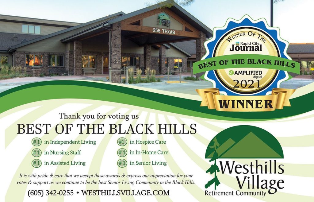 Thank you to our community who voted us Best of the Black Hills, again, in six categories. We are so proud of Westhills Village residents,